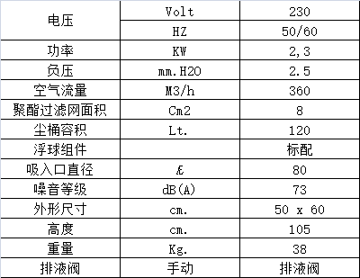 尘桶容量120 lt.,排水很方便,可通过底部的排水阀直接排出。