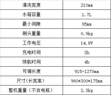 GTC-210B 经过人体工学考量,具备伸缩手柄及可调刷头角度设计。大容量锂电保证续航时间长达4 小时。刷头为难以到达的区域,如边角、缝隙而设计。只须把刷头安装到卡槽上便可开展工作,灵活更换。